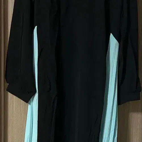 캐주얼 드레스 블랙과 스카이블루 배색 오부 소매