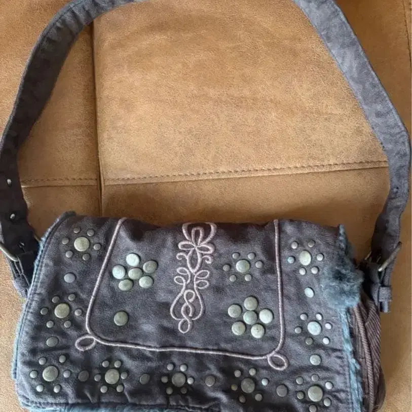 브라운 스웨이드 숄더백 Y2K 페어리 그런지 스터드