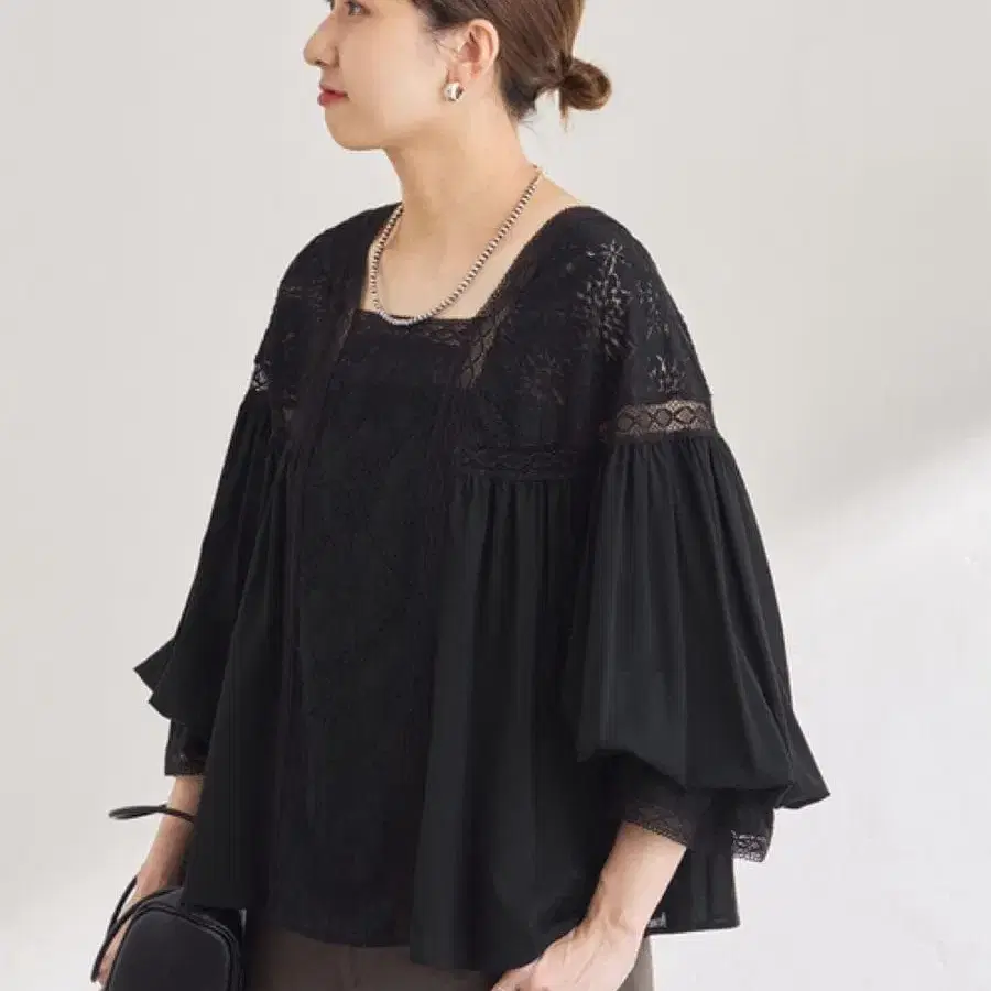 프레임워크 레이스 절개 개더 블라우스