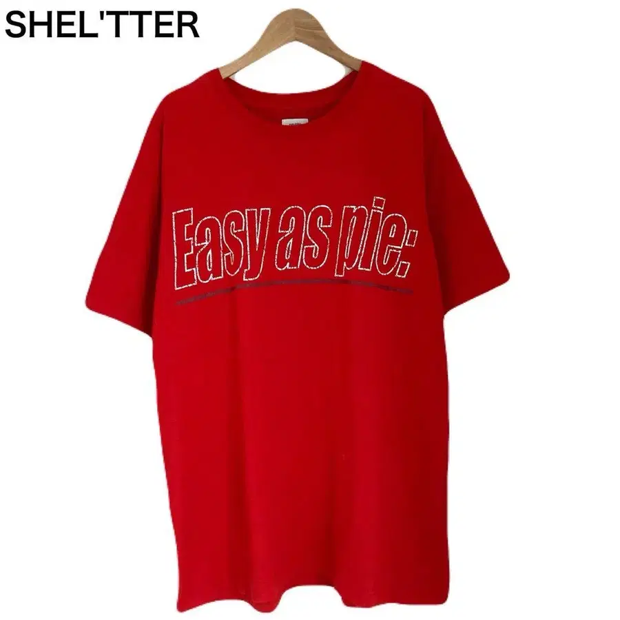 쉘터 프린트 빅 로고 레드 여성용 반팔 면 둥근넥 티셔츠