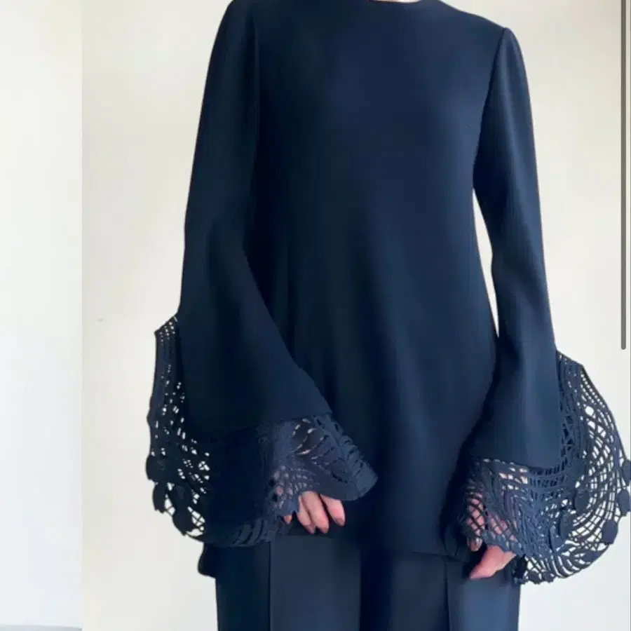 이번 시즌 마메쿠로구치 엠브로이더리 커프스 탑 - 블랙