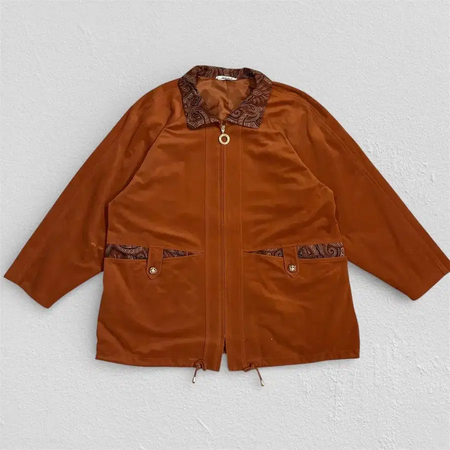 페이즐리 집업 스웨이드 느낌 자켓 브라운 레트로 구제 의류