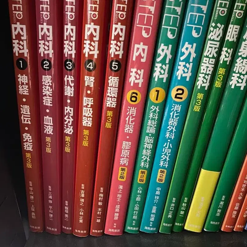 STEP 시리즈입니다. 전권입니다. 의사 국가 시험 대책으로 추천합니다. STEP 시리즈 (20권) 1. STEP 내과 1: 신경, 유전, 면역 제3판 2. STEP 내과 2: 감염증, 혈액 제3판 3. STEP 내과 3: 대사, 내분비 제3판 4. STEP 내과 4: 신장, 호흡기 제3판 5. STEP 내과 5: 순환기 제3판 6. STEP 내과 6: 소화기, 류마티스 제2판 7. STEP 외과 1: 외과 총론, 신경외과 제2판 8. STEP 외과 2: 소화기 외과, 소아 외과 제2판 9. STEP 비뇨기과 제3판 10. STEP 안과 제3판 11. STEP 영상의학과 12. STEP 피부과 제3판 13. STEP 이비인후과 제3판 14. STEP 마취과 제4판 15. STEP 산부인과 1: 부인과 제2판 16. STEP 산부인과 2: 산과 제2판 17. STEP 소아과 제3판 18. STEP 정신과 제2판 19. STEP 공중보건 제13판 20. STEP 정형외과 제4판 Simple Step (9권) 21. Simple Step 감염증 22. Simple Step 내분비, 대사 23. Simple Step 신장 24. Simple Step 혈액 25. Simple Step 공중보건 26. Simple Step 비뇨기과 27. Simple Step 피부과 28. Simple Step 안과 29. Simple Step 정신과 New Simple Step (4권) 30. New Simple Step 정신과 31. New Simple Step 소아과 32. New Simple Step 이비인후과 33. New Simple Step 공중보건 세트 내용: 의사 국가 시험 대책으로 스테디셀러인 [STEP 시리즈], [Simple Step], [New Simple Step] 합계 33권 묶음 판매 용도: 의사 국가 시험 / CBT / 임상 실습 총 복습 상태: 중고, 책등 모서리 스크래치, 약간의 늘어남이 있는 권이 있습니다. 필기: 필기 없는 권이 다수이나, 일부에 선긋기 및 필기가 있는 권도 있습니다 (놓친 부분은 양해 바랍니다). 부속품: 서적 본체만 판매 형식: 낱개 판매 불가