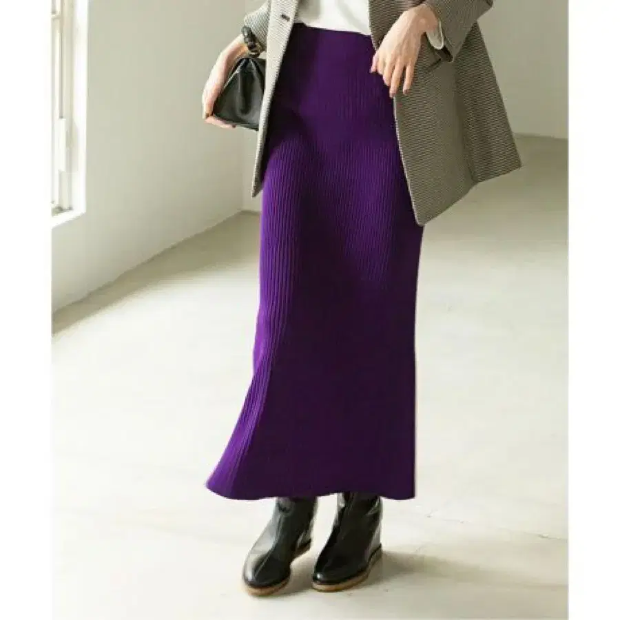 NOBLE 리브 니트 타이트 스커트 퍼플