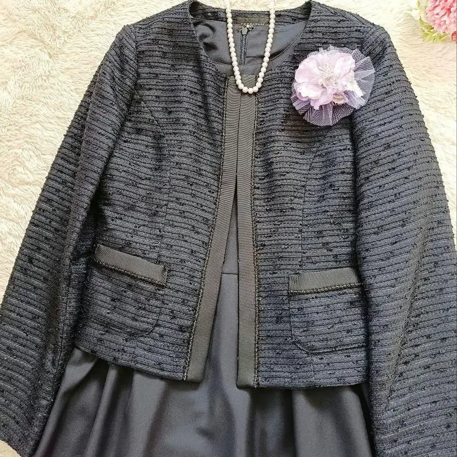 차분한 블랙 컬러에 트위드 조의 원단으로 고급스러움을 더했습니다. 심플하여 돌려입기 좋으며, 졸업식, 입학식, 학교 행사, 관혼상제, 출퇴근 시에도 추천합니다.