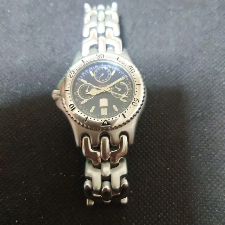 파란색 다이얼의 스테인리스 스틸 손목시계