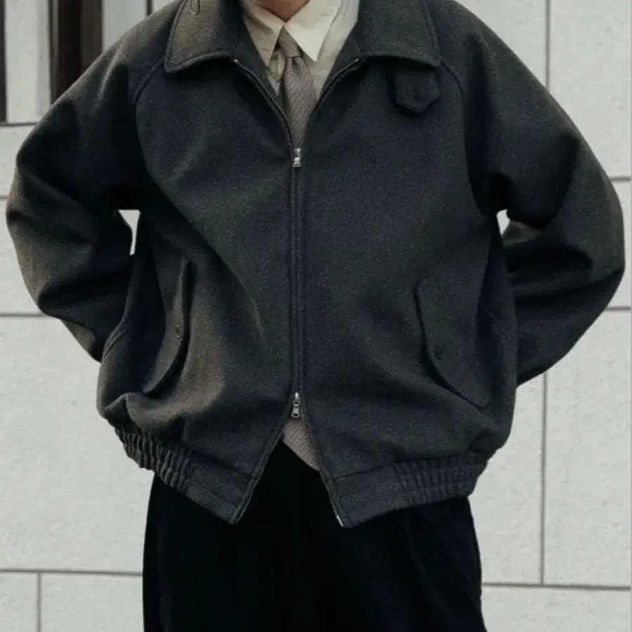 Bleme 더블 지퍼 멜톤 탄력 해링턴 자켓 턱 스트랩 포함