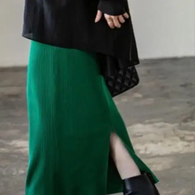• 프리스 마트 롱 니트 스커트 타이트 스커트 그린 구제 의류