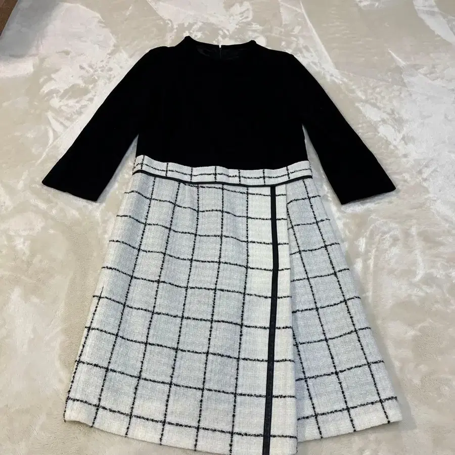 reflect 블랙 화이트 체크 무릎 기장 원피스 긴팔 작은 사이즈 7
