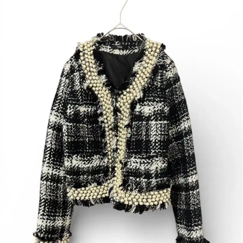DURAS 듀라스 펄 장식 트위드 체크 자켓
