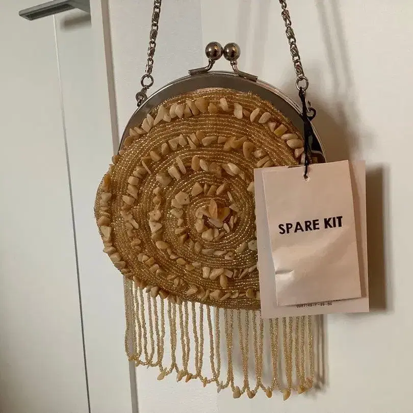 [ 미사용 택 포함 ] 비즈 핸드백 파티 백 베이지 골드