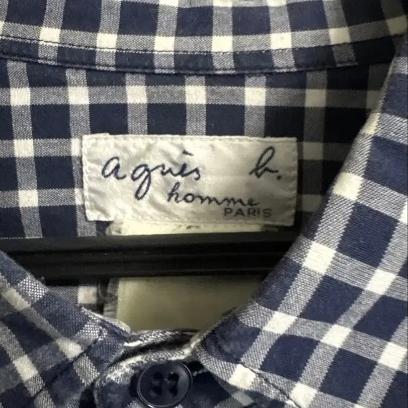 agnis b. 네이비 화이트 체크 긴팔 셔츠