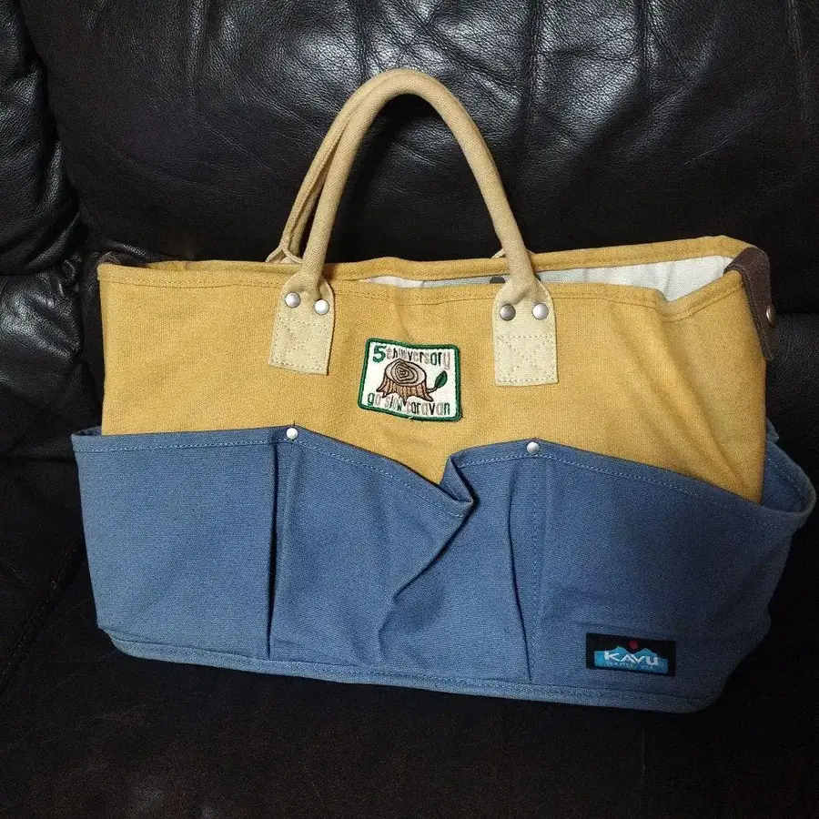KAVU 레어 가드닝 백, 토트백 베이지/파랑