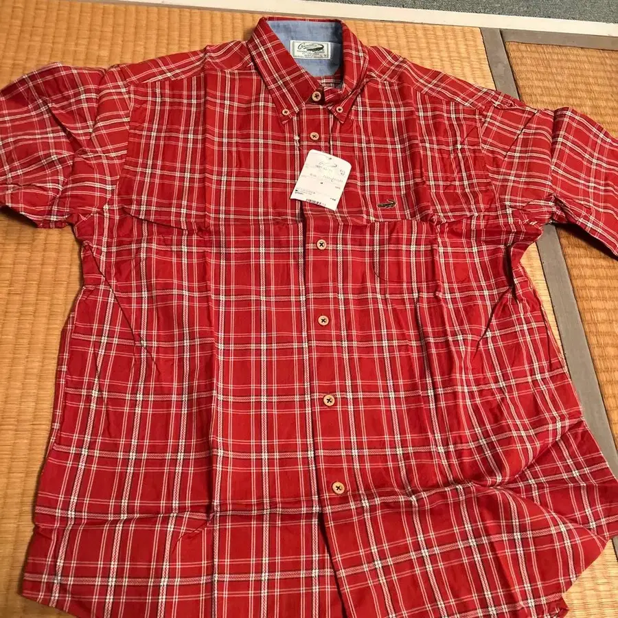 크로커다일 빨간색 체크 무늬 반팔 셔츠 L