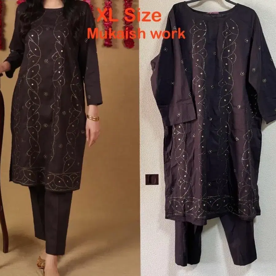 파키스탄 민족 의상 2피스 무카이쉬 워크 쿠르타 카다르 원단