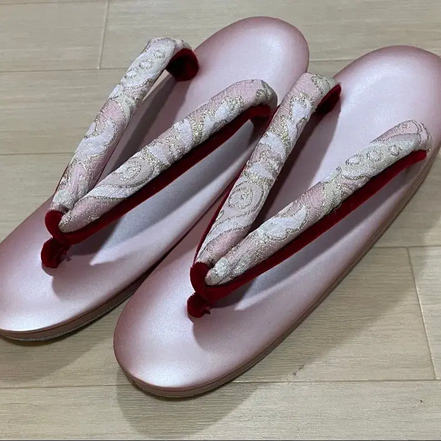 핑크색 바탕에 화이트와 핑크 꽃무늬 하나오(코 부분 끈)가 특징인 일본 정통 의상용 조리입니다. 하나오의 뒷면은 빨간색 벨로아 소재로 되어 있어 발에 닿는 느낌이 부드러울 것 같습니다. 포멀한 장면에도 사용할 수 있는 고급스러운 디자인입니다. [ 사이즈 ] M 사이즈 전체 길이: 약 23.5cm 폭: 약 7.8cm 발꿈치 높이: 약 4.5cm [ 기타 ] 미사용 새상품 일본 정통 의상용 조리 일본제 가죽 제품 컴플레인 대응이 불가하므로 예민하신 분이나 완벽을 추구하시는 분은 삼가해 주시기 바랍니다. 빛의 조사 각도에 따라 실제 상품의 색감과 사진의 색감이 다를 수 있습니다. 별도의 가공은 하지 않았으므로 이미지로 확인해 주십시오. 에어캡으로 감싸 종이상자에 담아 발송합니다. 가격 인하는 없습니다. 일본 정통 의상 소품 일본 정통 의상용 조리 기모노, 일본 의류 입학식, 졸업식, 결혼식 성인식, 호몬기, 코몬 장인의 기술, 핸드메이드 잘 부탁드립니다.