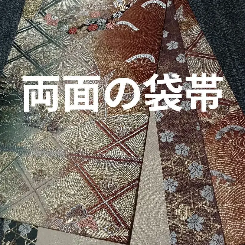 당오리 후쿠로 오비 양면 지면에 길상 문양 간도 문양 금은사 순수 실크