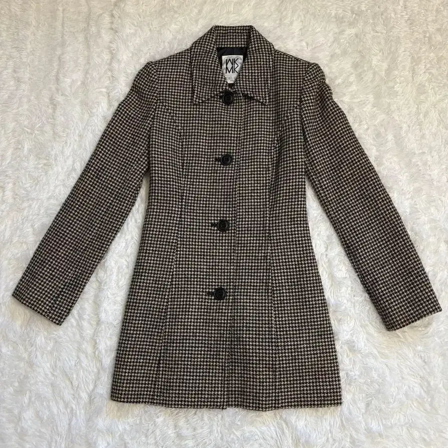MICHEL KLEIN 여성용 울 코트 L 린넨 하운드투스