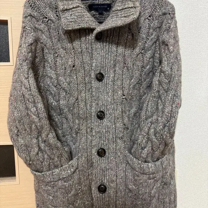 TOMMY HILFIGER 케이블 짜임 가디건 L 사이즈 그레이
