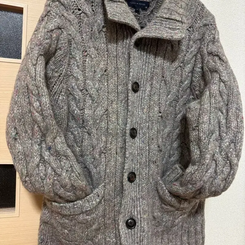 TOMMY HILFIGER 케이블 짜임 가디건 L 사이즈 그레이