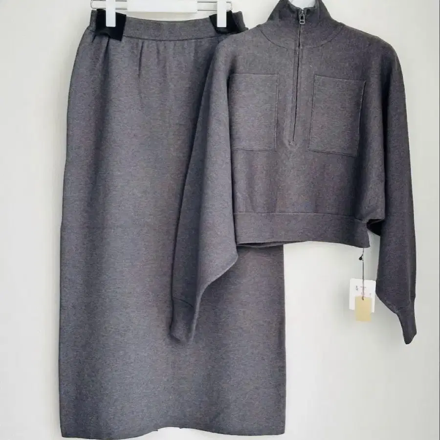 그레이 케이블 짜임 니트 스커트 셋업 한국 스타일
