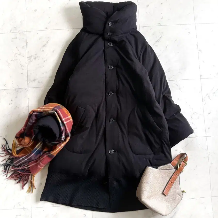 새상품급 플랜테이션 스탠드 카라 롱 기장 다운 코트 블랙