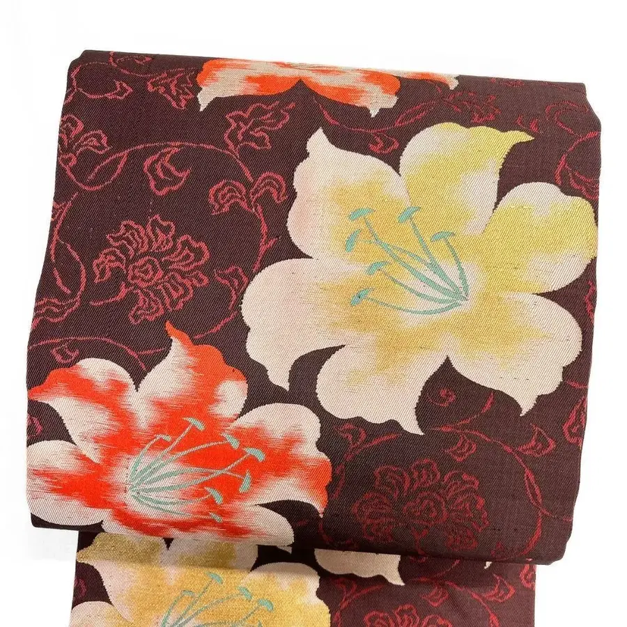 앤티크 백합꽃이 짜여진 후쿠로 오비입니다.