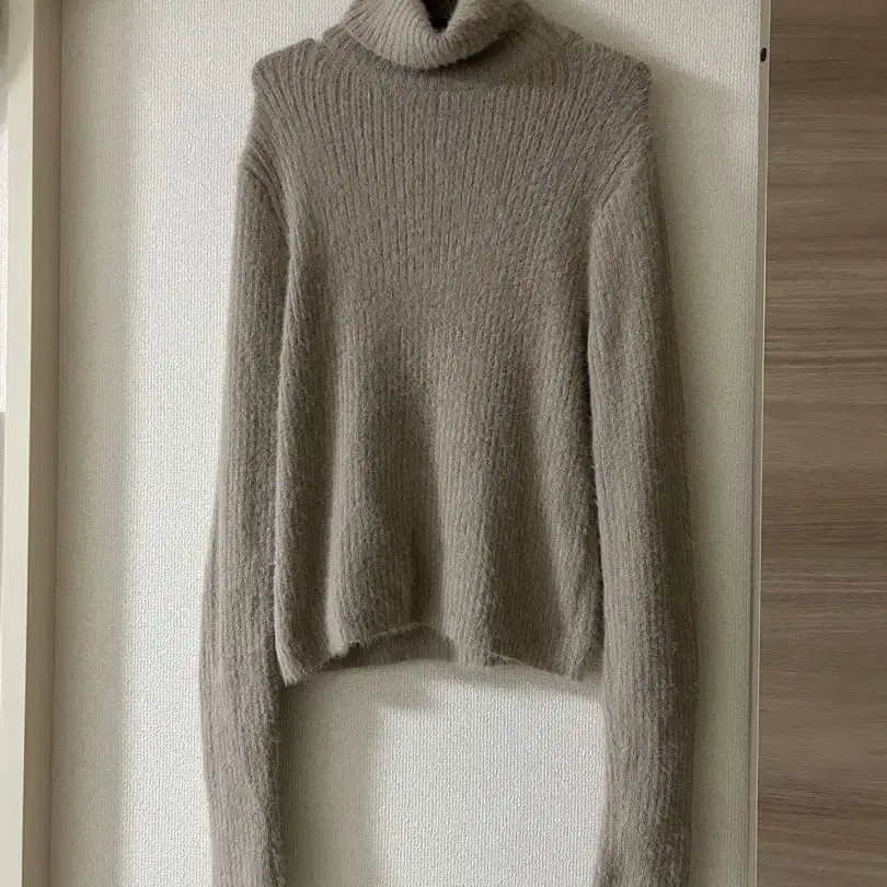 베이지 샤기 니트 터틀넥 니트 스웨터