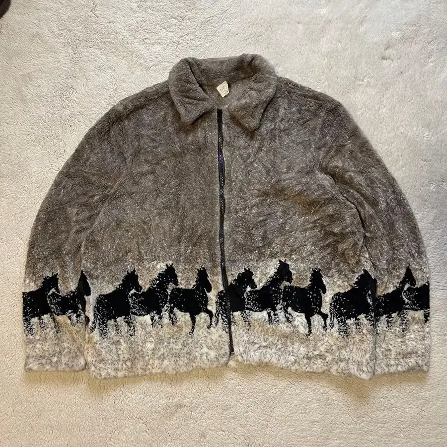 빈티지 구제 의류 USA제 애니멀 무늬 호스 말 플리스 자켓