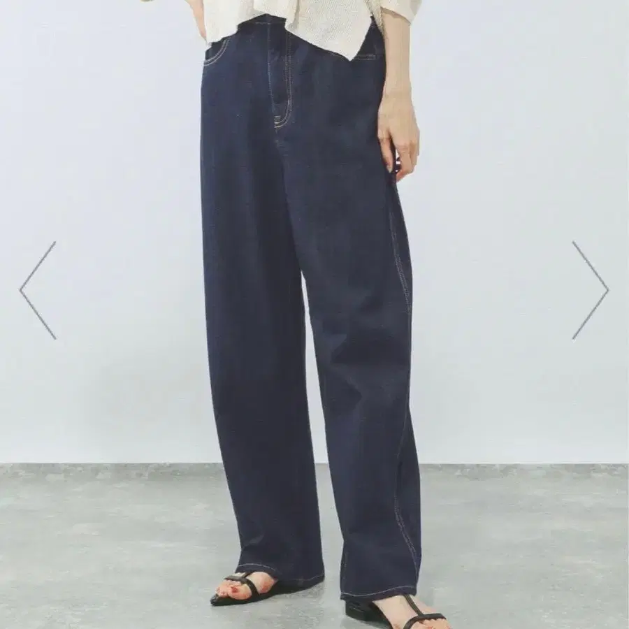허벅지~무릎까지는 너무 넓지 않은 적당한 여유, 거기에서 밑단으로 향해 완만하게 커브시켜 적당히 루즈한 실루엣으로.