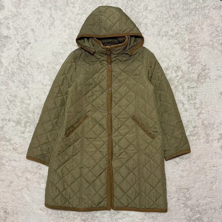 • 새상품급 라벤햄 보아 안감 후드 퀼팅 코트 롱 현행 택 34