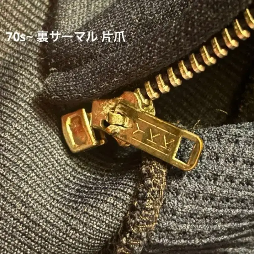 70s~ 네이비 풀 집업 후드티 안감 써멀 편측 지퍼