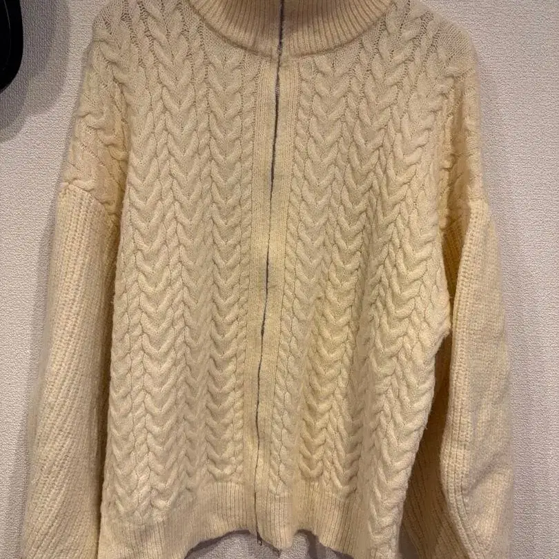 Bab 아이보리 케이블 짜임 집업 스웨터