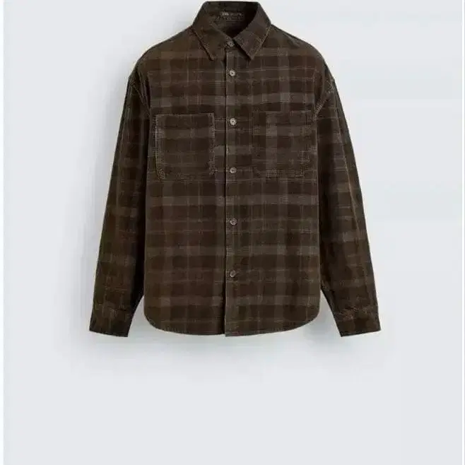 [ 미사용 새상품 ] ZARA 체크 무늬 코듀로이 셔츠 M 브라운