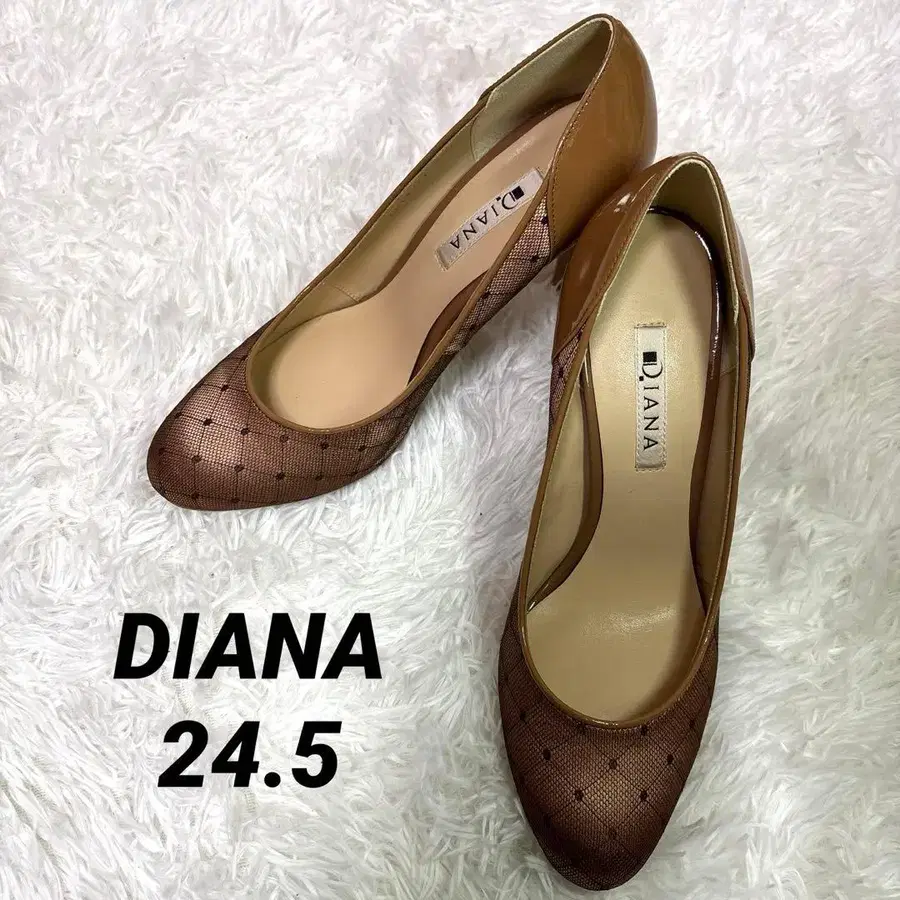 [ 컨디션 최상 ] DIANA 도트 무늬 스틸레토 하이힐 24.5 에나멜