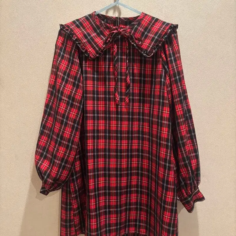 jnuetie 쥬에티 빨간 체크 원피스 탈부착 카라