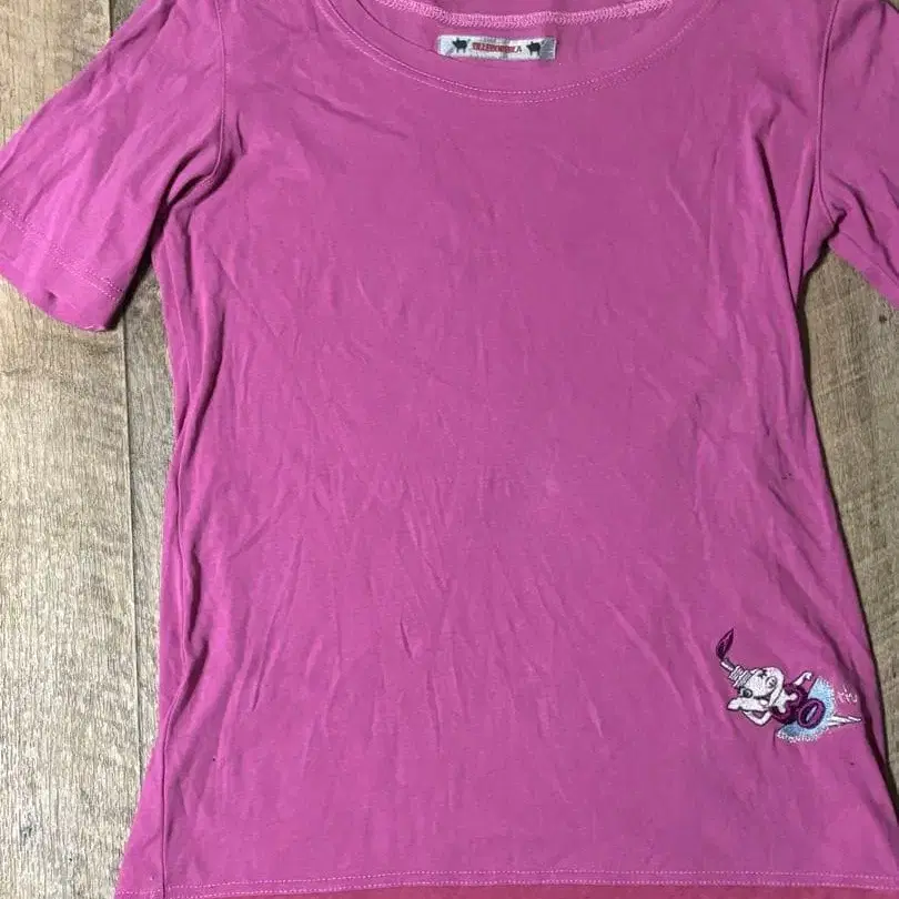 알베로베로 핑크 반팔 T셔츠 돼지 자수 캐릭터 포함