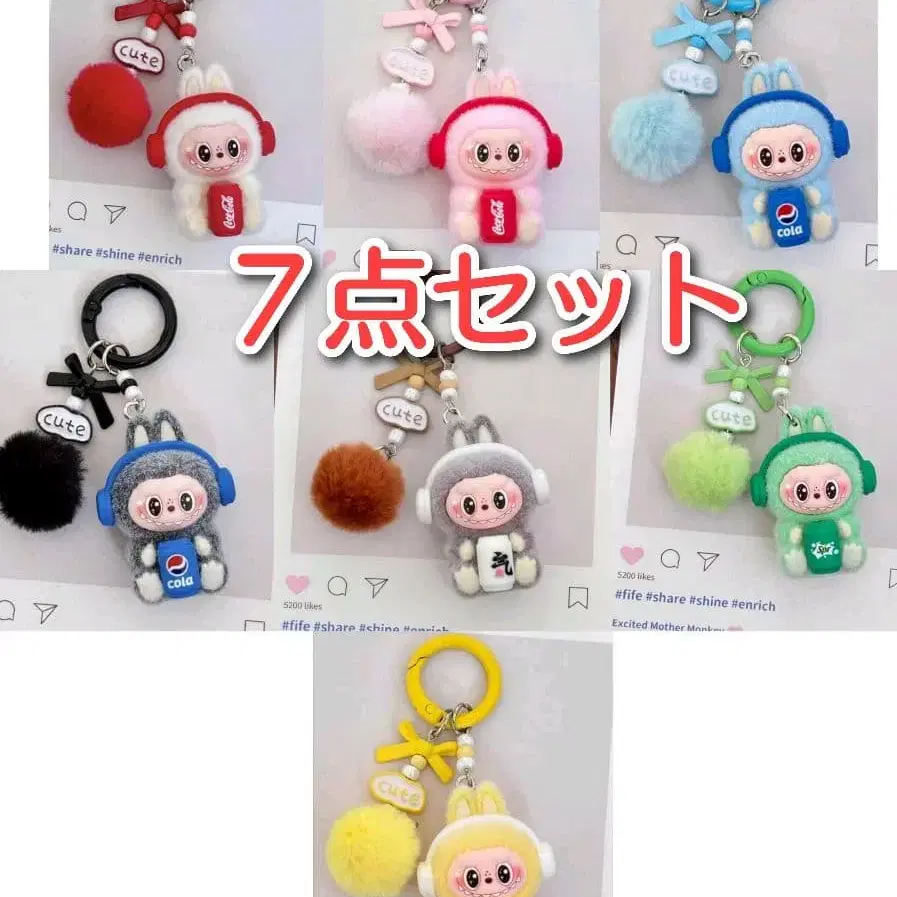 러브브 봉제 인형 키링 7개 세트 콜라 폼폼 포함