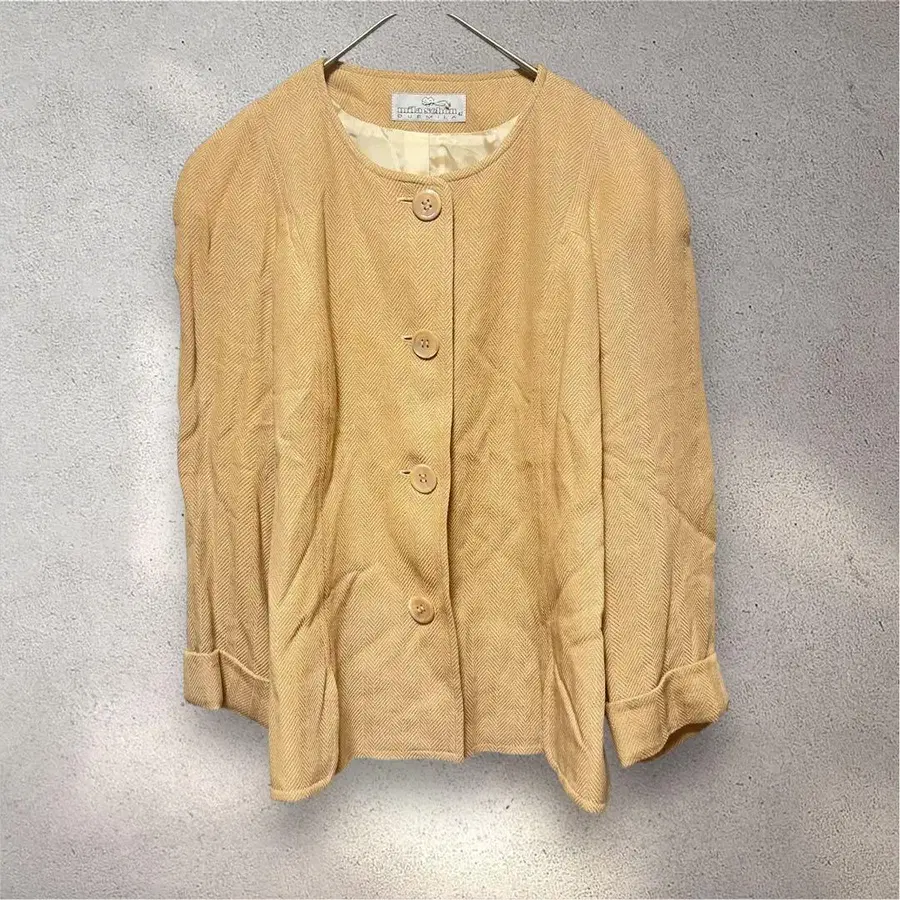 밀라 쇤 노카라 자켓 42 베이지 어깨 패드 레트로