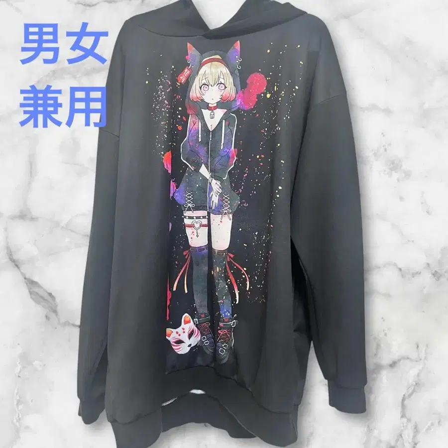 ankoROCK 고양이 귀 달린 블랙 후드티 남녀 공용 프리 사이즈