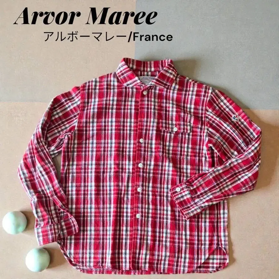 알보 마리 프랑스 긴팔 셔츠 체크 빨간색
