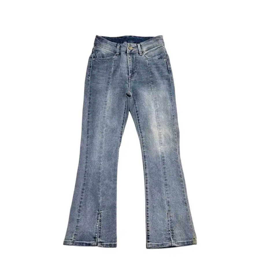 밑단으로 갈수록 완만하게 퍼지는 플레어 실루엣이 특징인 데님 팬츠. 다리 라인을 깔끔하게 보여주는 부츠컷 디자인으로, 스타일업 효과를 기대할 수 있습니다. 적당한 색빠짐과 스트레치가 들어간 소재감으로, 데일리로 사용하기 좋은 아이템입니다.