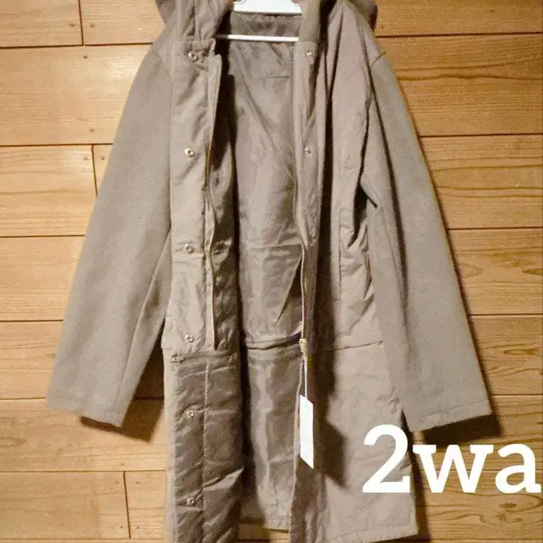후드 부착 퀼팅 롱 코트 진한 베이지
