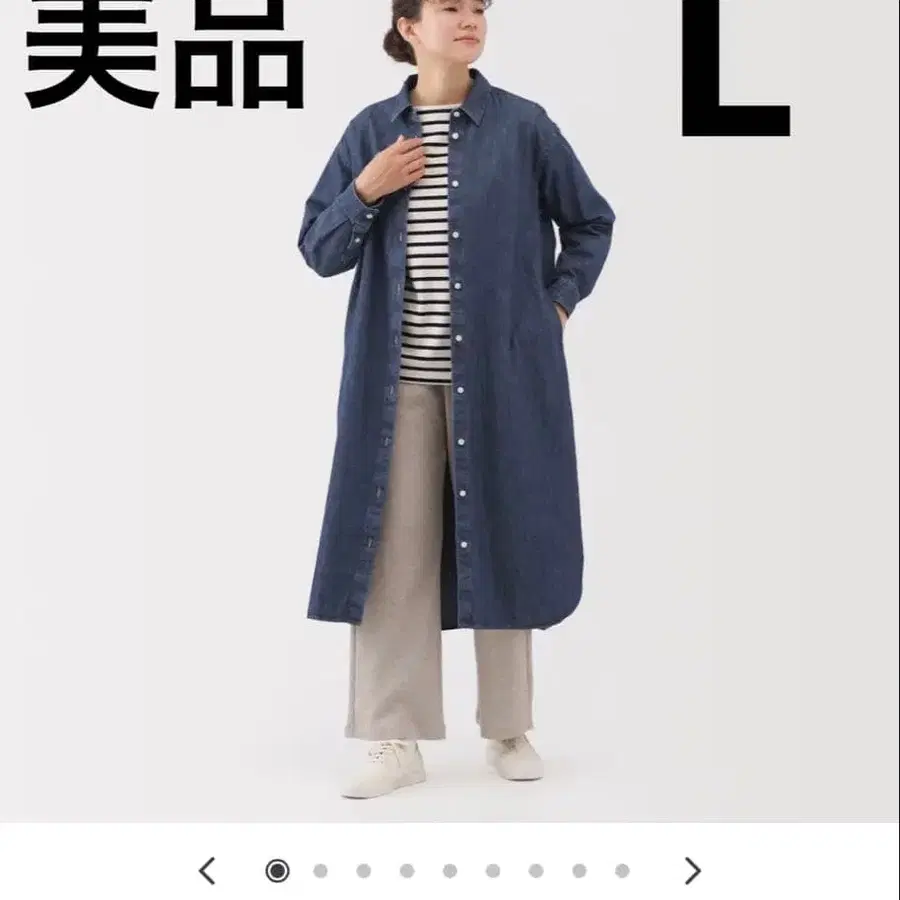[무인양품] 여성 워싱 데님 긴팔 셔츠 원피스 블루 L