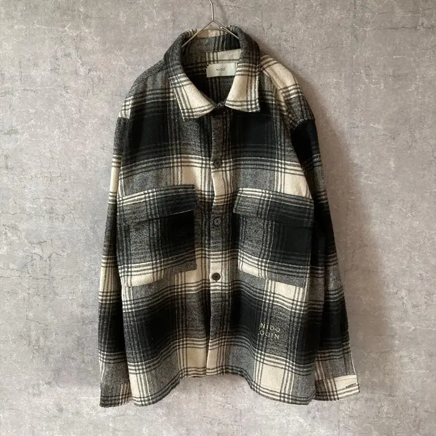 NIDO 옴브레 체크 무늬 플란넬 셔츠 모노톤 M 사이즈