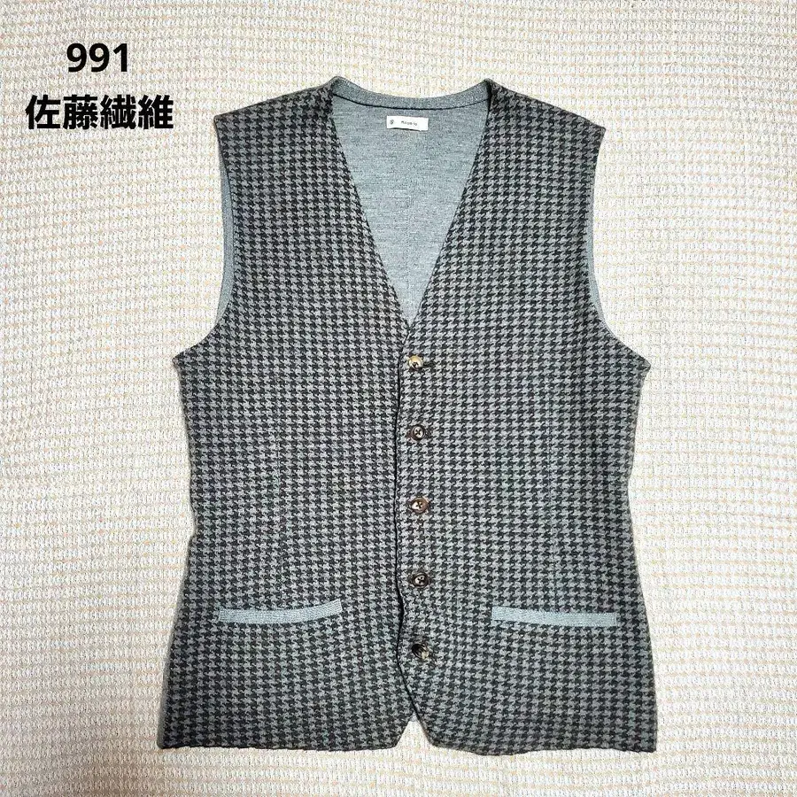 991 사토 섬유 Rosario 베스트 울 하운드투스 체크 패턴