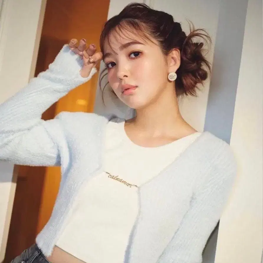 CALNAMUR 샤기 니트 미니 가디건 아이스 블루
