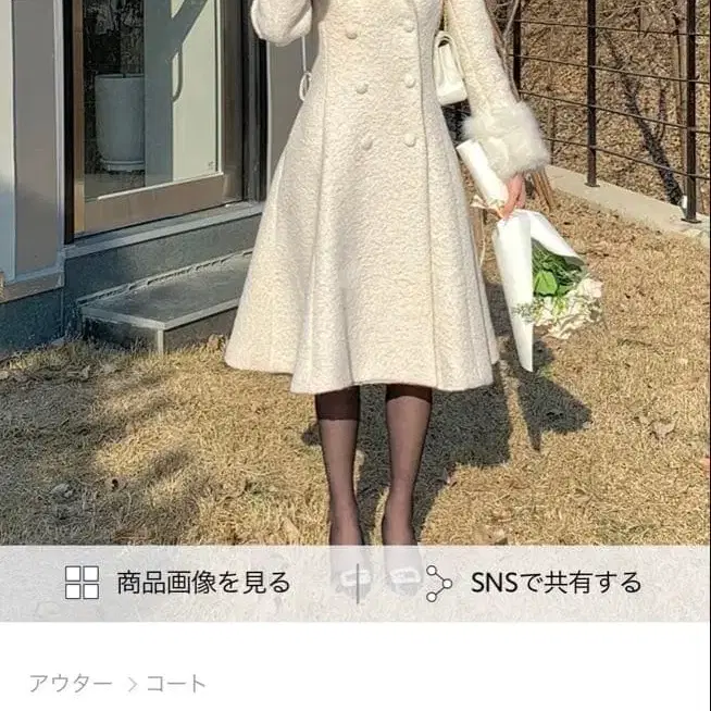 벨트 포함 에코 퍼 포인트 플레어 코트 [ 아이보리 ]