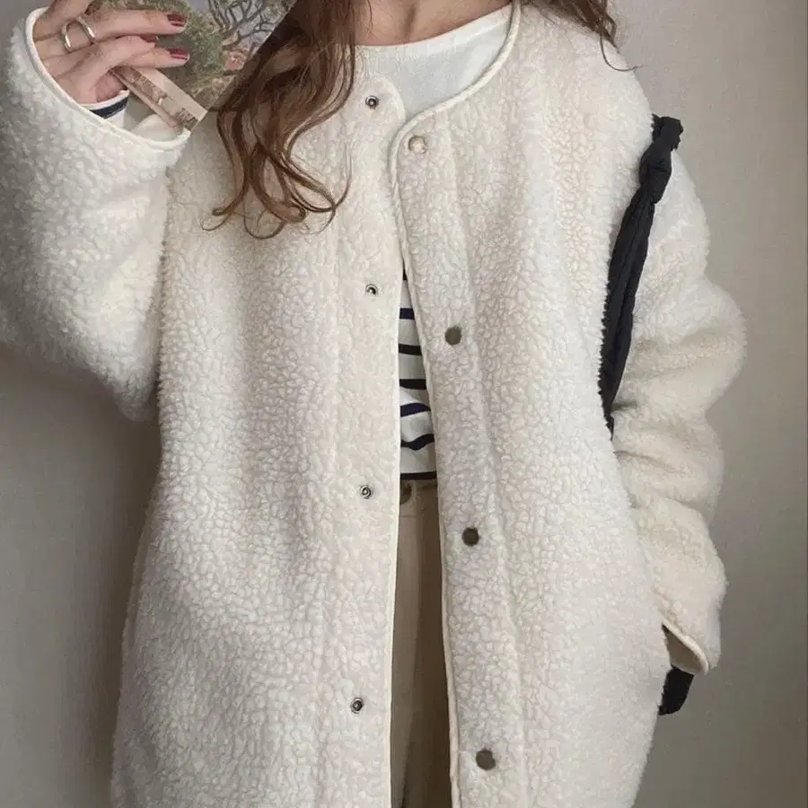 노카라 디자인으로 깔끔하게 착용할 수 있으며, 하이넥 상의와도 궁합이 좋은 아우터입니다.