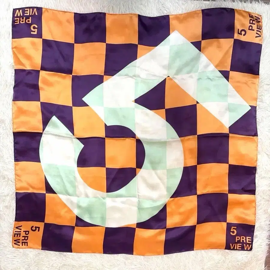 5PREVIEW 실크 스카프 체크 무늬 오렌지 보라색